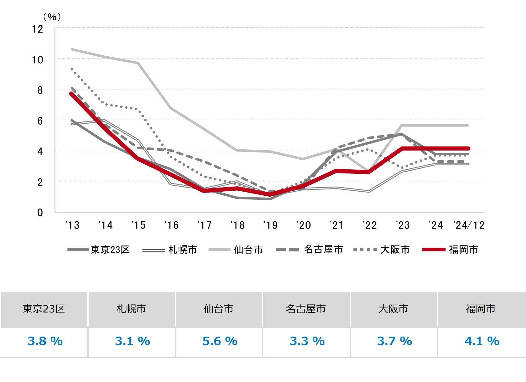 空室率 前月から上昇 「天神」は2.0ポイントの大幅な上昇