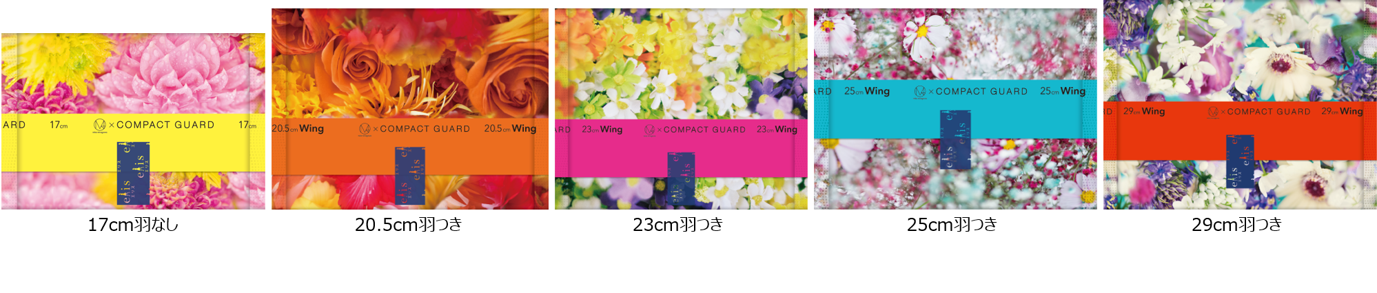 華やかなデザインで気分を上げる「エリス コンパクトガード」、ふんわりとやさしい印象のデザインで気分を癒す「エリス 素肌のきもち」
