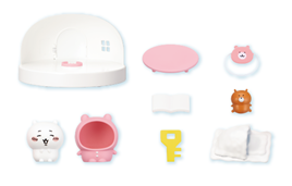 ・同梱内容: おうち本体、ちいかわ人形、かぎ、ぬいぐるみ、しき布団、かけ布団、くまさんポシェット、テーブル、ノート、パジャマ、シール