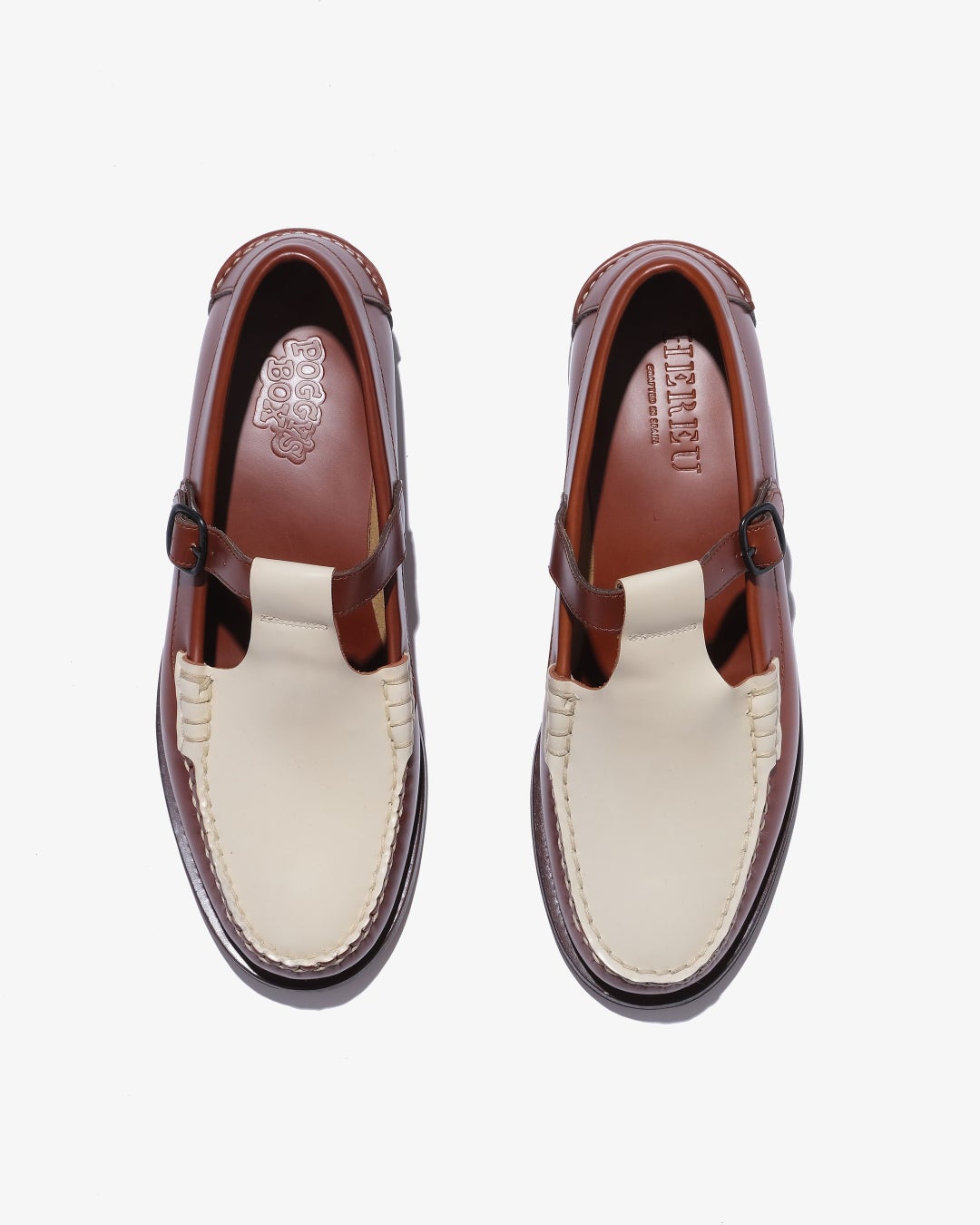 きっかけはNEATの西野君からの紹介。デザイナーにも会って、バルセロナのアトリエは歴史的な建築物の側にあり、すぐにビーチにも行ける環境から、このようなクラシックかつリゾート感あるデザインが産まれているのを知りました。カーハートのブラウンダックにも合うような、コンビシューズを別注しています。
