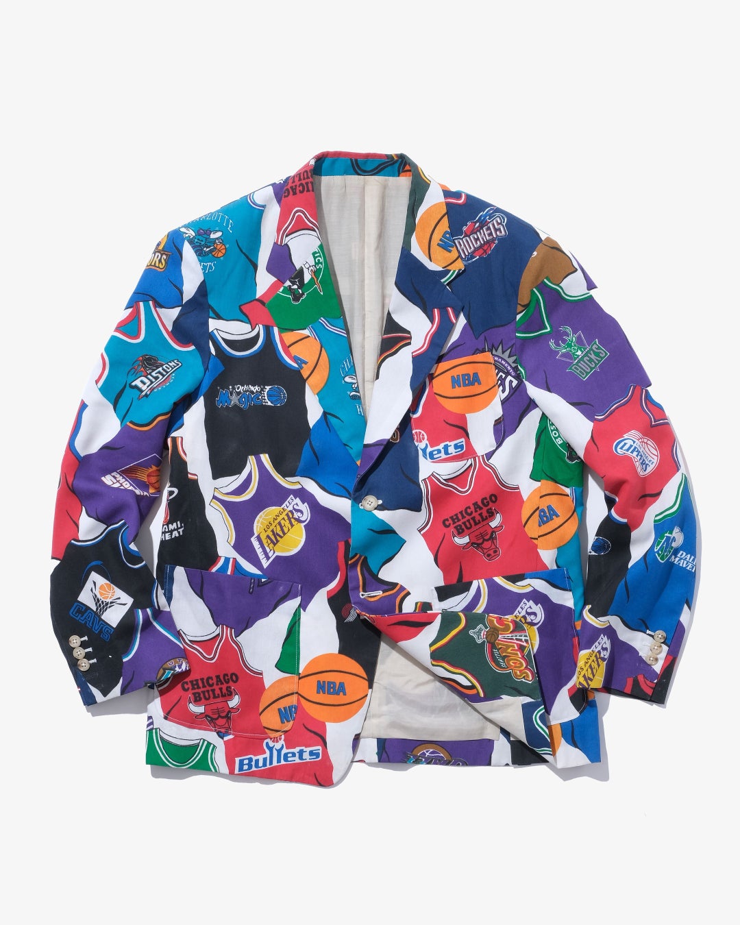 バスケットボールが大好きなデザイナーによるブランド。ヴィンテージのベッドシーツをリメイクして作った1点物のテーラードジャケットを、特別に5着だけ制作してもらっています。きちんと裏地を貼って仕立てているので、タイドアップしても様になるとても綺麗なジャケットです。