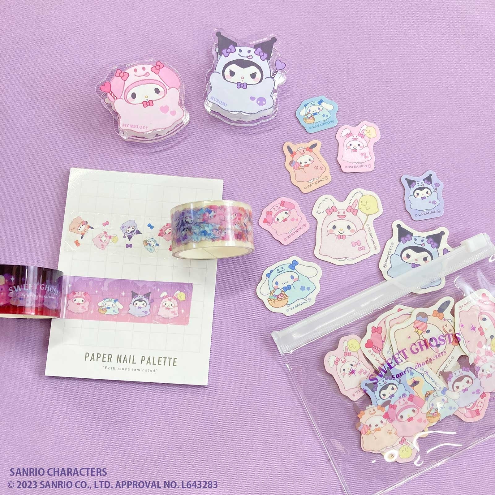 ハロウィン限定デザイン「SWEET GHOSTS」はサンキューマート描き下ろしのオリジナルアートで、株式会社サンリオのキャラクターが可愛らしいポップなオバケの被り物を身に着けたデザインです。