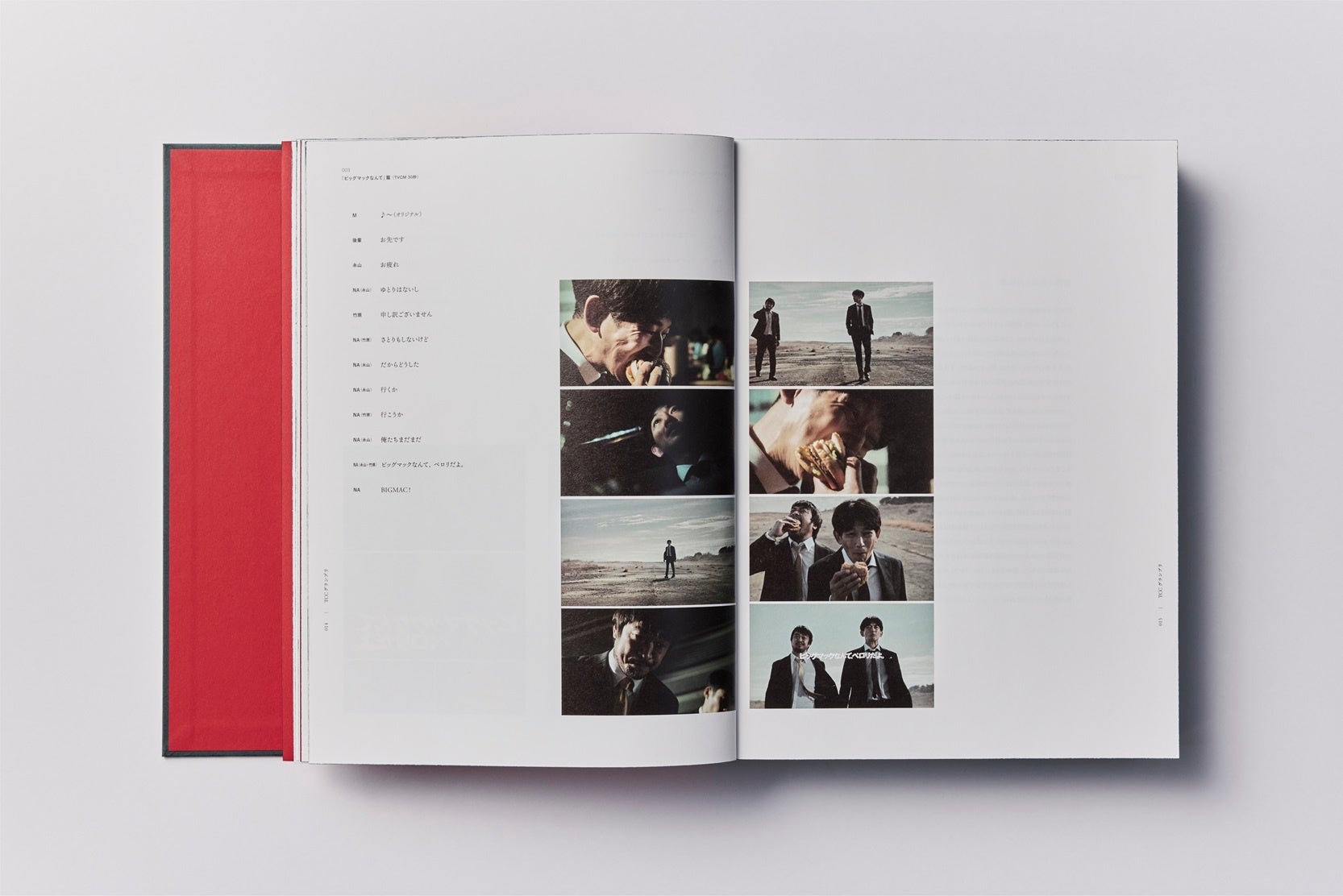 黒っぽい塊(かたまり)にも見える年鑑の裏テーマは「溶岩」。開くと目に飛び込む赤色は、コピーライターやコピーが放つエネルギーを表しています。デザインはシンプルに、「広告の言葉をしっかり読み込める年鑑」を目指しました。