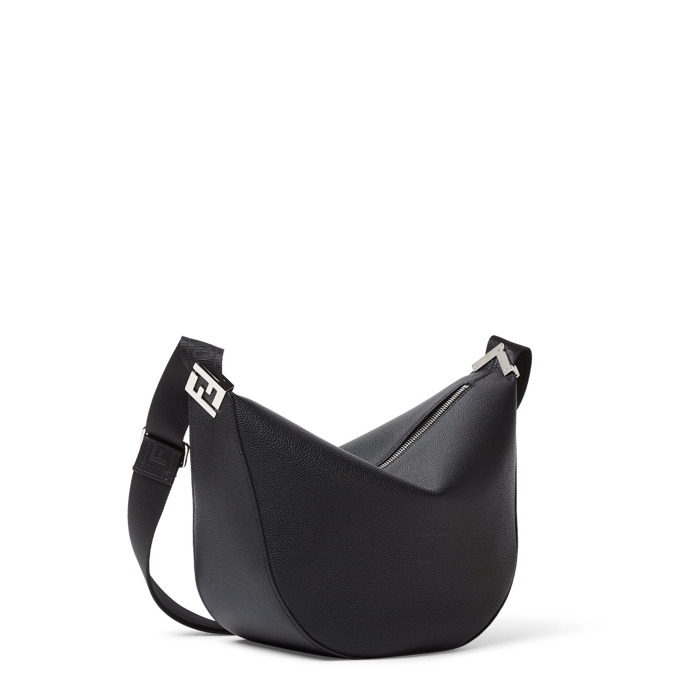 2024-25年秋冬 メンズコレクションでデビューを飾った「フェンディ メロン」。柔らかなスマイルを思わせるシルエット、そしてサイドにあしらわれたメタル製の「FF」ロゴとシルバーメタルのパーツが、洗練された存在感を放ちます。スモールサイズの縁には、丁寧に手作業で施された同色のステッチがあしらわれています。長さの調節可能なストラップにより、クロスボディバッグとしてはもちろん、ショルダーバッグやハンドバッグとしても使用可能です。