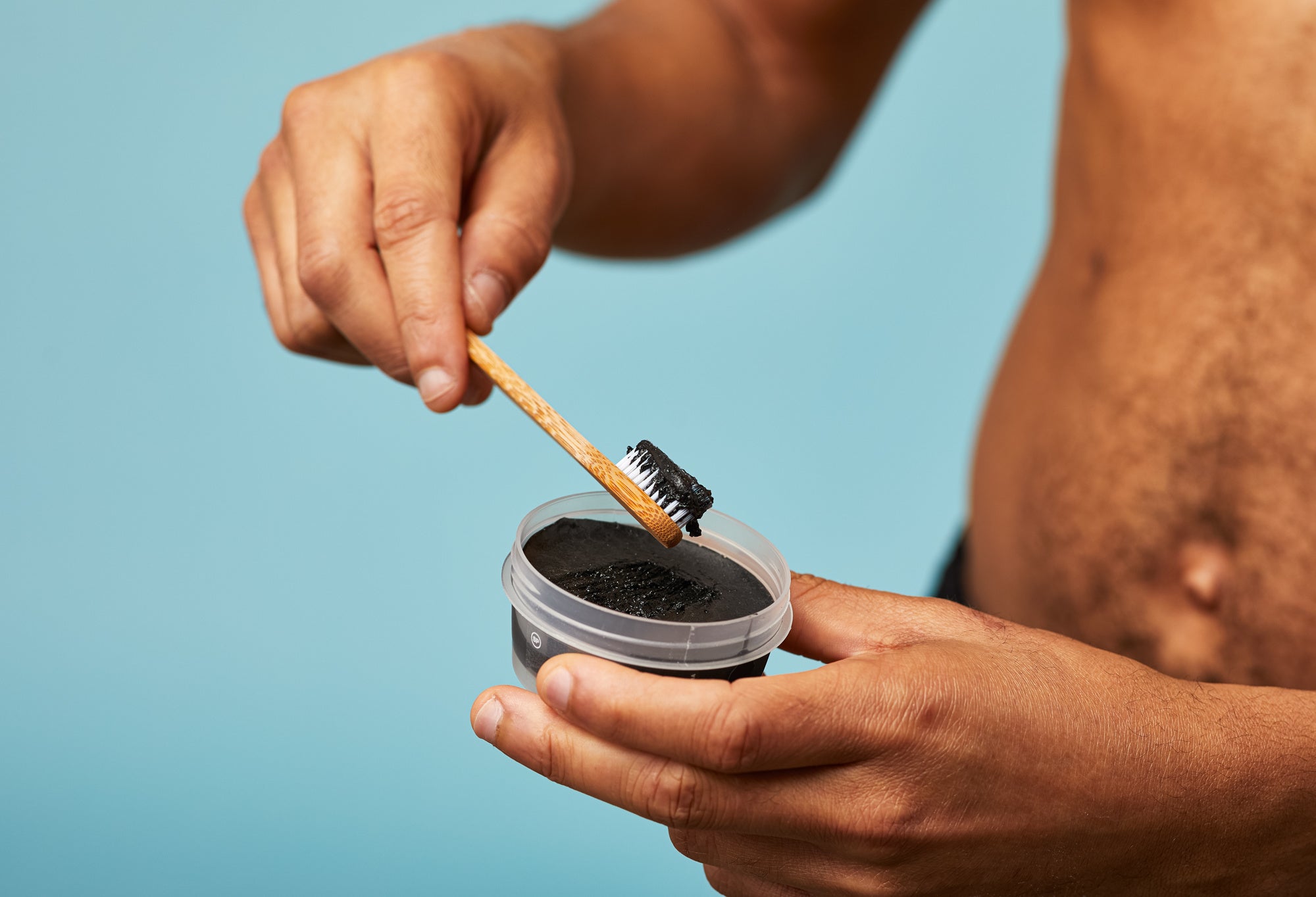 「歯磨き粉は白い」という先入観を覆す、黒い歯磨き用ジェリーの登場です。ステインや歯石の沈着を防ぎ、ホワイトニング効果をもたらす活性炭、口内を清潔にしたり、口内を健やかに保つクローブバットオイルを配合しています。この活性炭は、一般的な炭にさらに熱処理を加えたもので、物質を閉じ込める微細な孔がより多く開いているので、吸着力が高く、歯の表面に付着した汚れや歯垢の除去をサポートして口臭を防ぎます。