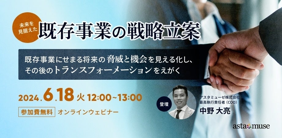 既存のコア事業をいかに変革し成長させるか? 無料ウェビナー「未来を見据えた既存事業の戦略立案~既存事業にせまる将来の<脅威と機会>を見える化し、その後の<トランスフォーメーション>をえがく~」を再開催