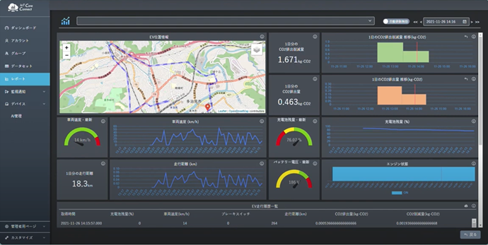 EV公用車ごとの移動データを随時取得することによる車両の稼働管理の効率化、ガソリン車と比較したCO2削減量を可視化することによるEV公用車への移行検討の動機付け、職員の環境意識向上への寄与など、ゼロカーボンシティ施策の推進につながるとの評価を得ました。