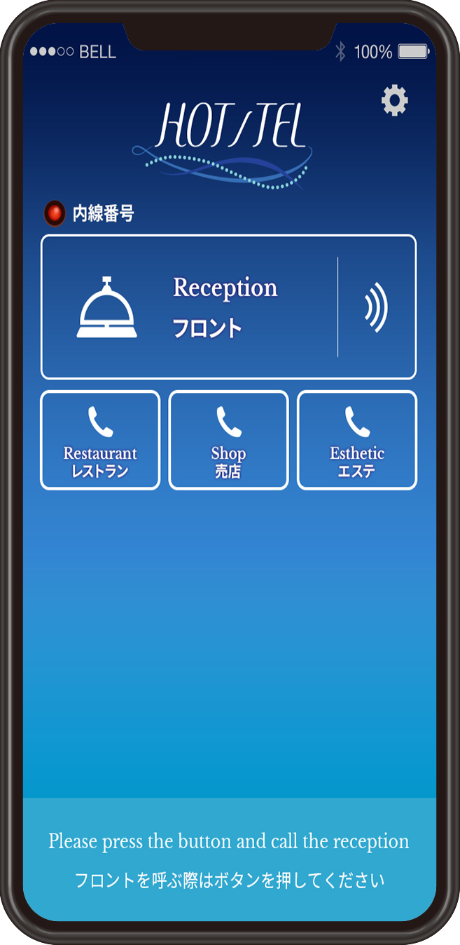 ゲストが利用する客室電話機能。フロントとの内線や外線が可能です。