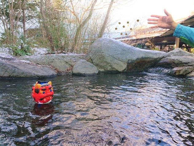 節分にちなみ、「広瀬川 海のみなもと山・里・川」エリアのコイ水槽に、“鬼のお面”が出現!!ガチャガチャで販売しているコイのごはんを豆に見立て、鬼の面に向かって“豆まき”体験ができます。コイたちにごはんをあげて、福を呼び込みましょう!