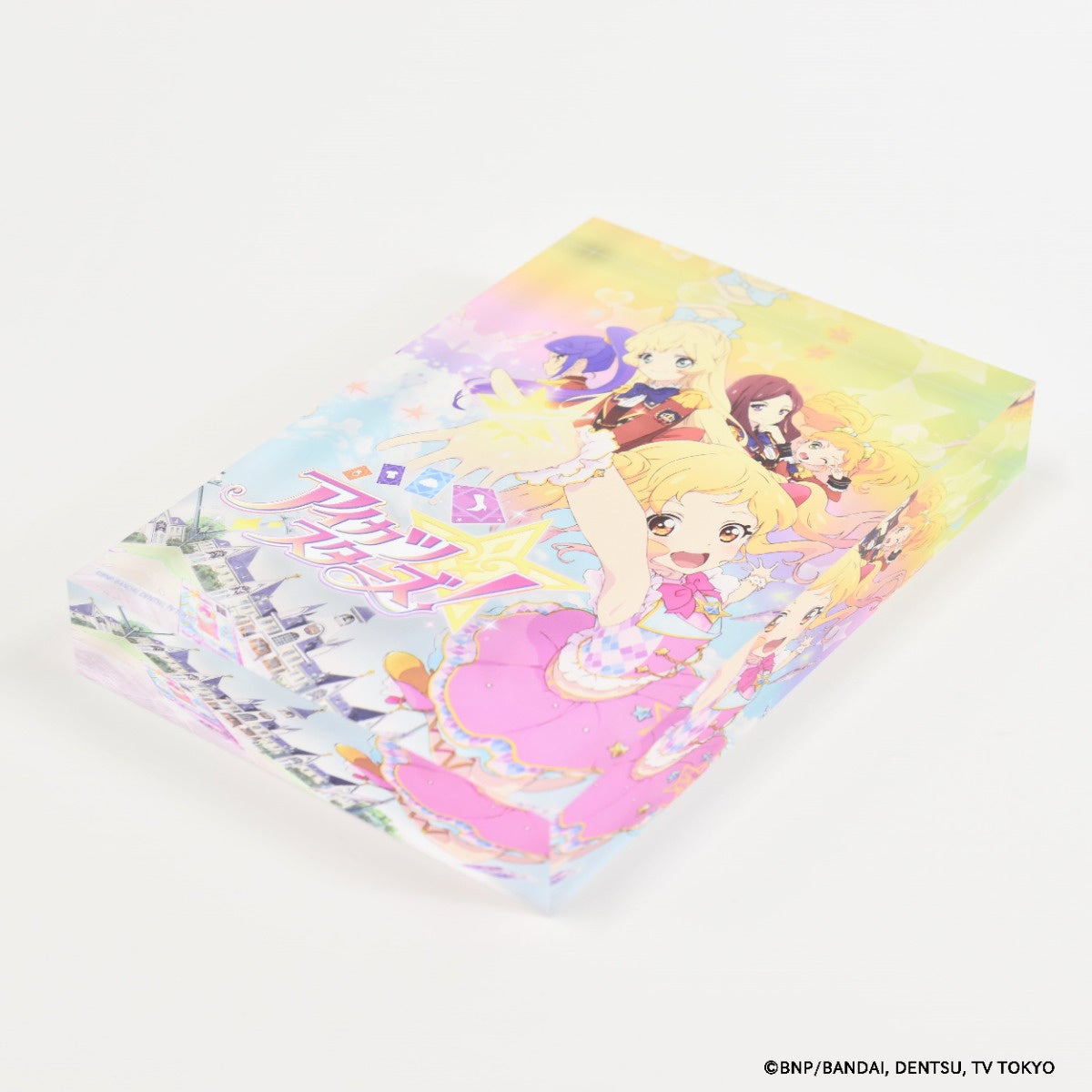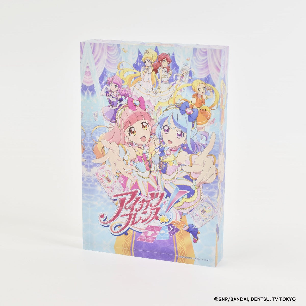 笑顔で仲良く手を繋ぐ6人のアイドルたち……彼女たちが繋いできた「アイカツ!」の重厚な軌跡をそのままアクリルブロックにとじ込めた贅沢な一品です。きっと一生の宝物になるはず♪