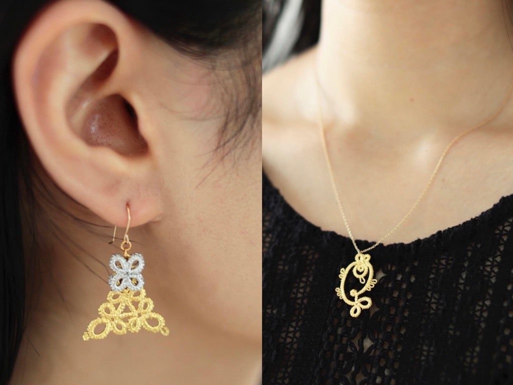 16世紀のヨーロッパが発祥とされる「タティングレース」に、400年以上の歴史を持つ金沢の伝統的工芸品「金沢箔」を施したアイテムを製作する〈Gold-Knot (ゴールド・ノット)〉。繊細な輝きと軽くて優しいつけ心地が特徴です。日常の暮らしで伝統工芸を身につけてほしいと考え立ち上がった金沢発のアクセサリーブランドです。
