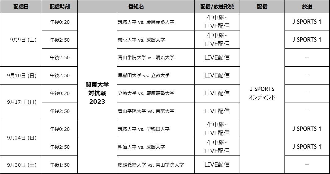 フランスでラグビーの祭典が行われる中、国内では大学ラグビーシーズンも到来します。J SPORTSでは、9月9日(土)に開幕する「関東大学対抗戦 Aグループ(関東大学対抗戦2023)」、「関東大学リーグ戦 1部(関東大学リーグ戦2023)」と、9月17日(日)に開幕する「関西大学リーグ Aリーグ(関西大学リーグ2023)」をJ SPORTSオンデマンドで今年も全試合を配信いたします。また、注目試合は実況・解説付きで徹底放送いたします。