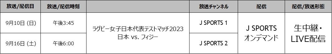 さらに、新生サクラフィフティーンに注目が集まる「ラグビー女子日本代表テストマッチ2023 日本 vs. フィジー」の2連戦も、9月10日(日)16日(土)に生中継・LIVE配信いたします。