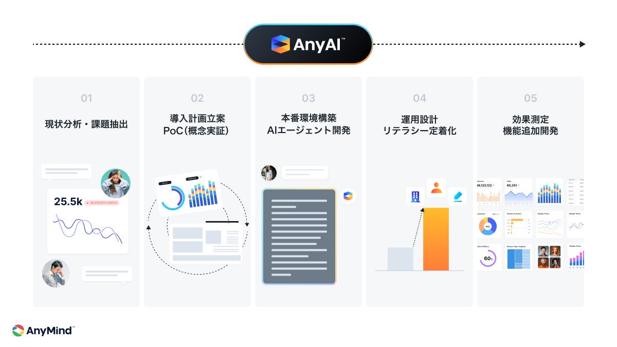 当社は現在、すべての事業・拠点・社員が一丸となってAI活用に本気で取り組み、「AI-Native Company」への変革を加速させております。AIの価値を最大化するためには、単なる技術導入にとどまらず、「どの事業の、どの業務に、どのように活用し、人とどう共創していくか」という視点が不可欠です。この「AnyAI Workflow」を通じて、テクノロジーと人の力を融合させ、クライアントの業務、ひいては事業の効率化・高度化を実現し、企業や社会の変革に貢献してまいります。