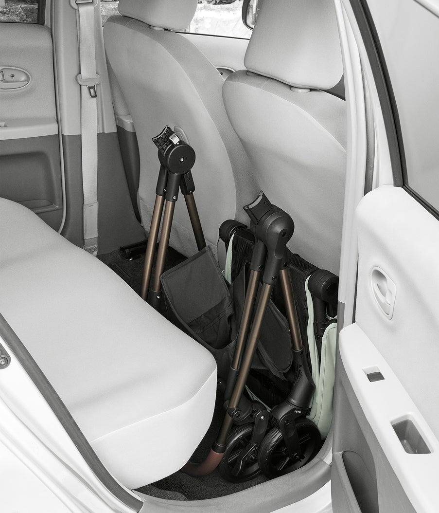 またフレームからシートが取り外せるため、車のトランクや後部座席などの限られたスペースにもコンパクトに収納できます。外出中のさまざまなシチュエーションに柔軟に対応できる1台です。