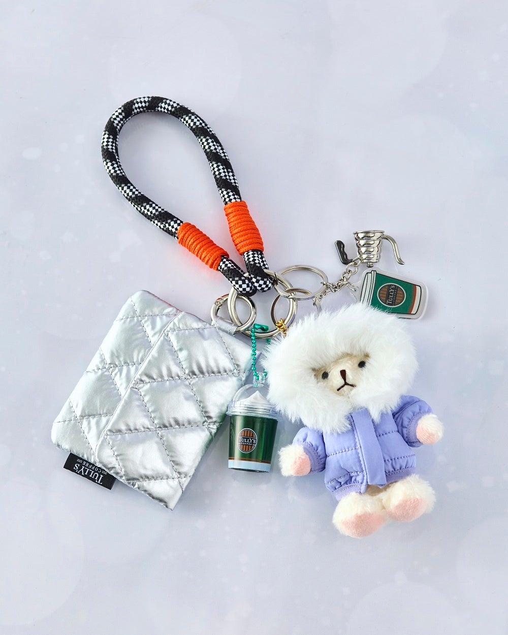 コーヒー器具をモチーフにしたチャームやポーチを組み合わせたタリーズオリジナルのバッグチャーム。カラビナにご自身でお持ちのチャームなどをカスタマイズしてお楽しみいただけます。