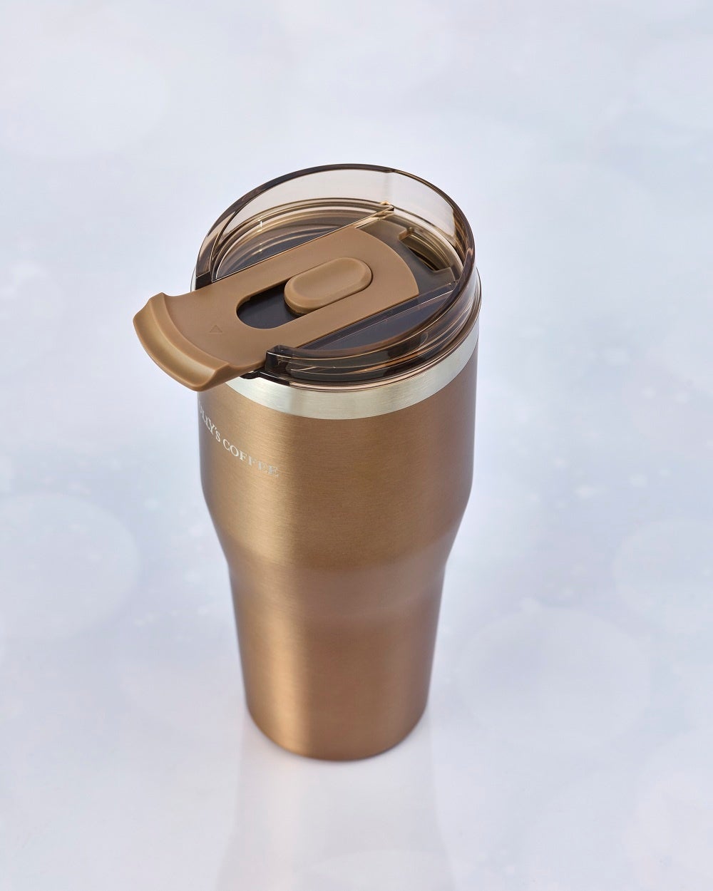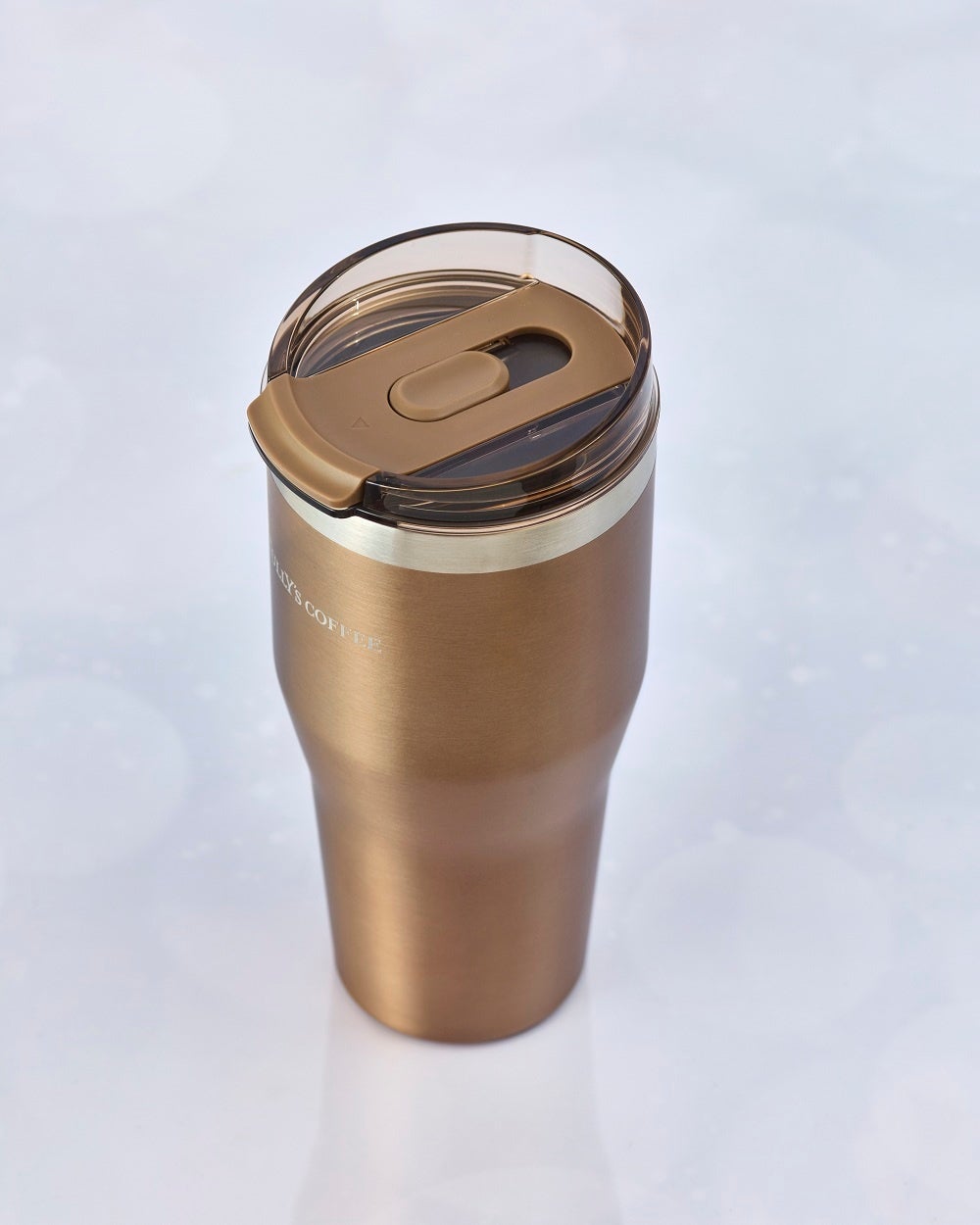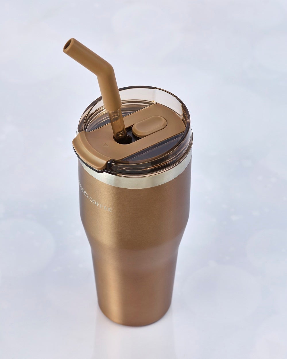 ストローを通す・直接飲むの2WAYでご活用いただける大容量サイズのタンブラー。メタリックなカラーがシンプルながらも華やかなデザインになっています。