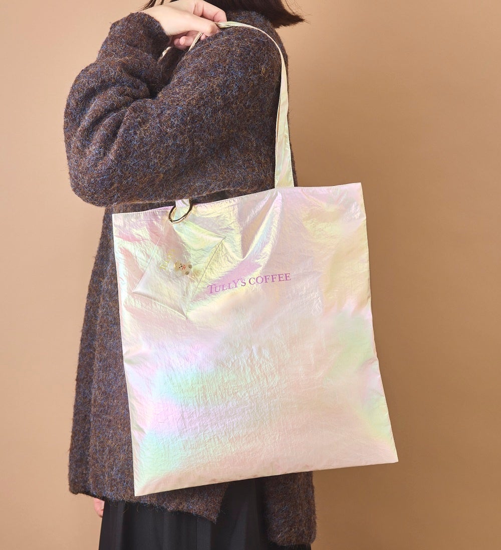 ベアフル®のイラストがデザインされたクリアポーチとオーロラに輝く生地のトートのセット。トートはポーチに収納できて、持ち歩きにも便利です。