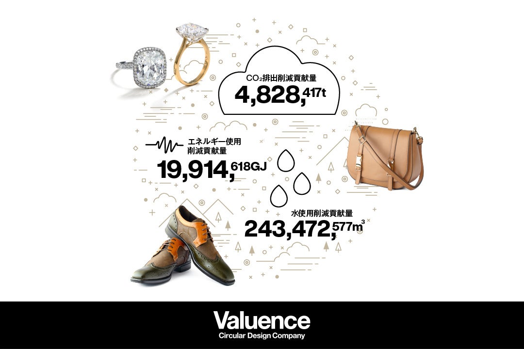 ※2:当社グループが仕入れ、再販する商品(時計、バッグ、ジュエリー、地金、アパレル等)をお客様が購入することにより、同商品の非リユース品を購入する場合に発生すると想定される同種商品の資源調達、製造、輸送、廃棄過程が理論上省略できるという仮定のもと、その省略された過程で生じる環境負荷(CO₂排出等)を削減貢献量として算定。詳細は当社サイト「Sustainability」ページ(https://www.valuence.inc/sustainability/)をご覧ください