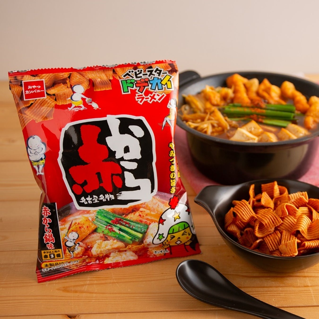 株式会社おやつカンパニー(所在地:三重県津市 代表取締役社長:横山正志)は、株式会社甲羅(本社所在地:愛知県豊橋市 代表取締役社長:沼澤裕)が全国で139店舗展開している外食チェーン店『赤から』とのコラボ商品として「ベビースタードデカイラーメン(赤から監修 赤から鍋味)」を、2024年10月21日(月)より、期間限定商品として発売します。