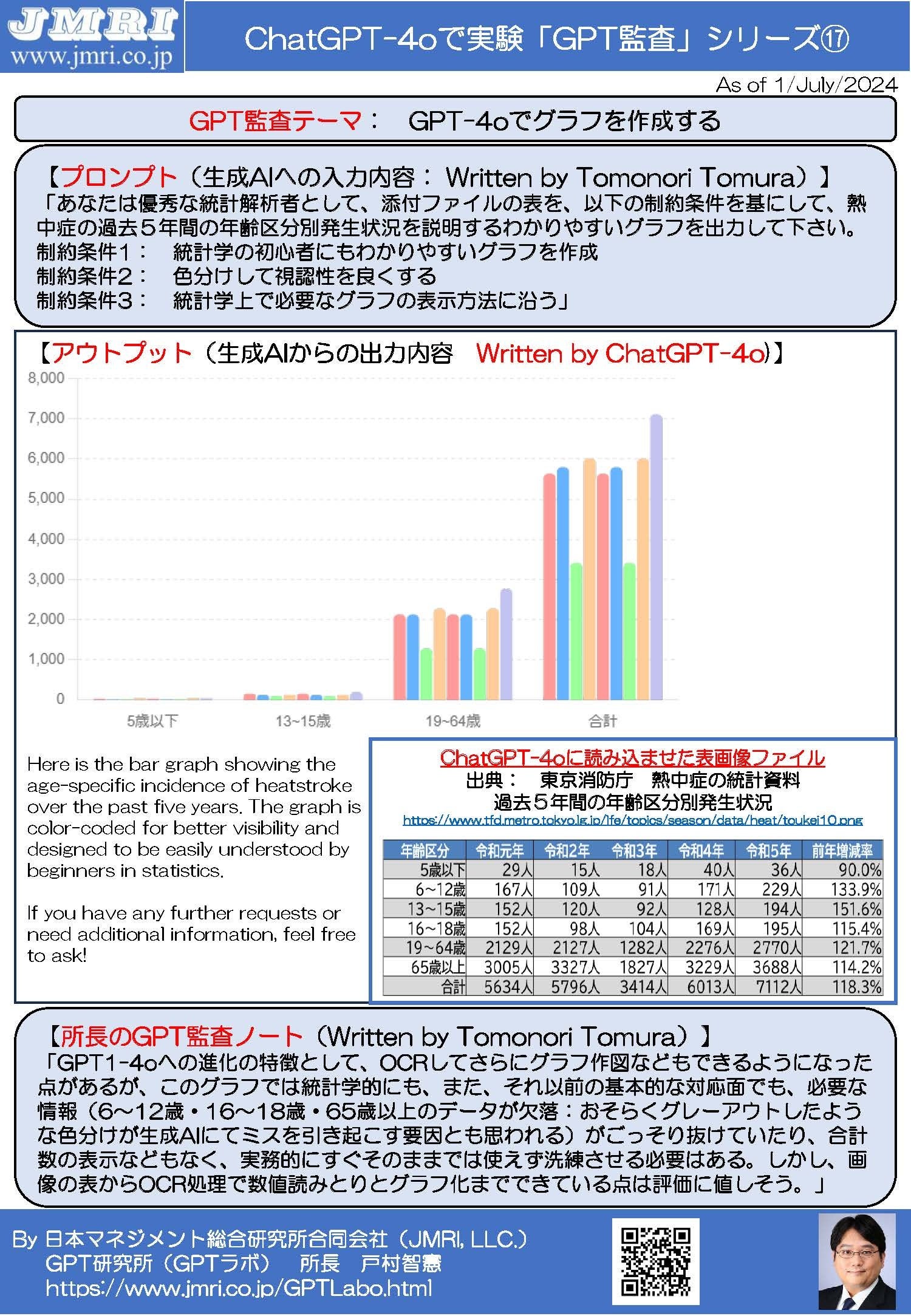 ChatGPT最新版(GPT-4o)で統計数値の表を読み込ませてのグラフ作成を検証するGPT監査レポート17(GPT監査人:戸村智憲)とプロンプトの公開【日本マネジメント総合研究所合同会社】