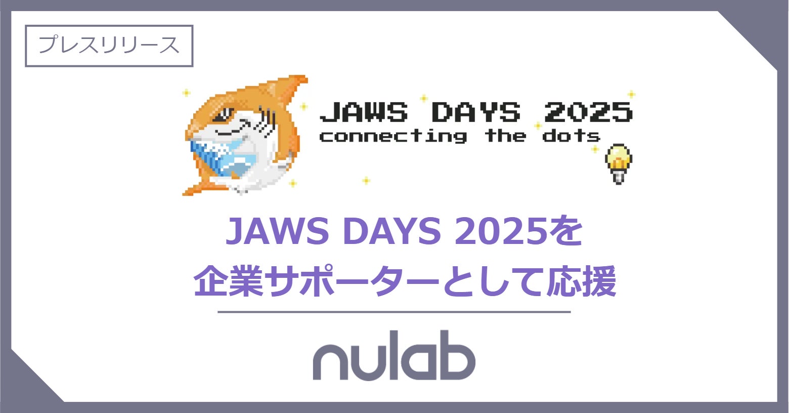 株式会社ヌーラボ(本社:福岡県福岡市、代表取締役:橋本正徳、以下 ヌーラボ)はAmazon Web Services(以下 AWS)のユーザーグループである JAWS-UG(AWS User Group – Japan)が2025年3月1日(土)に開催するイベント「JAWS DAYS 2025」の開催を、ゴールドスポンサーとして応援することをお知らせします。
