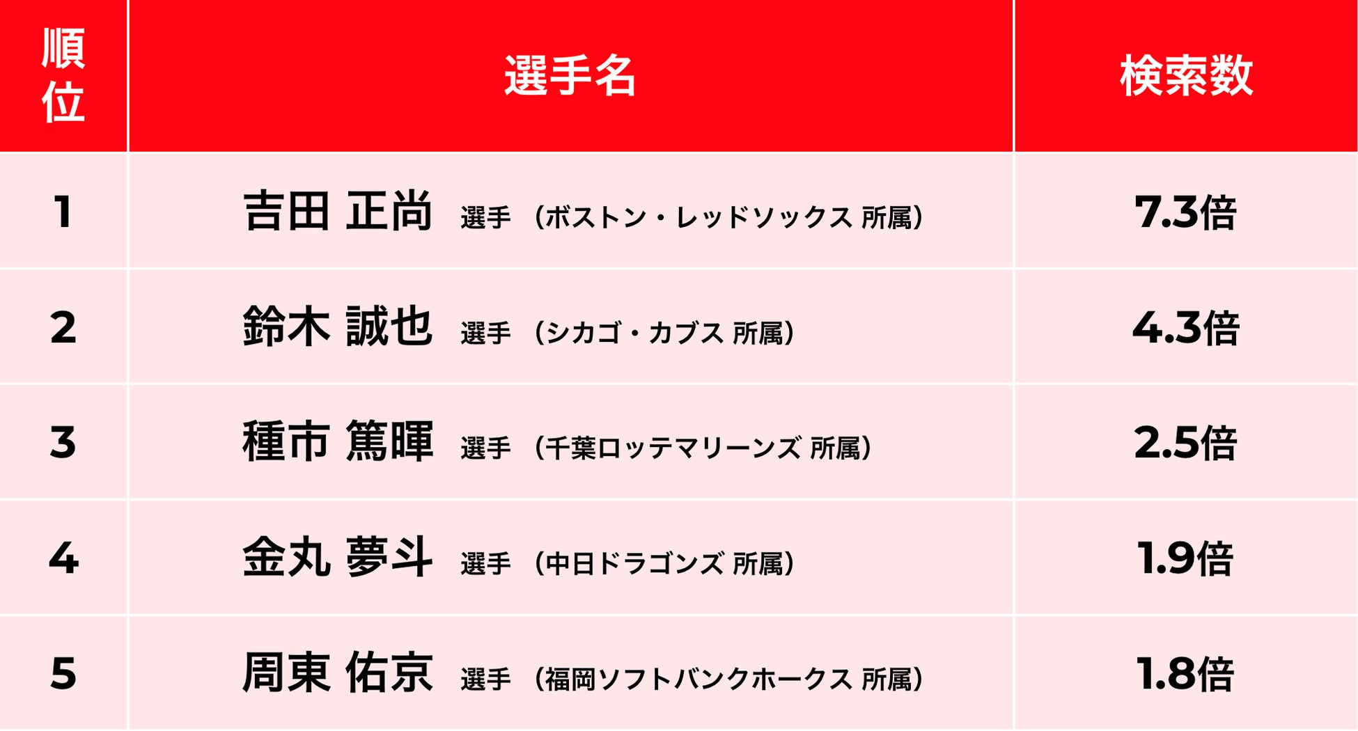 〜再び野球世界一へ。大会開幕後に検索数が急上昇した「野球日本代表選手」ランキング TOP5を発表〜