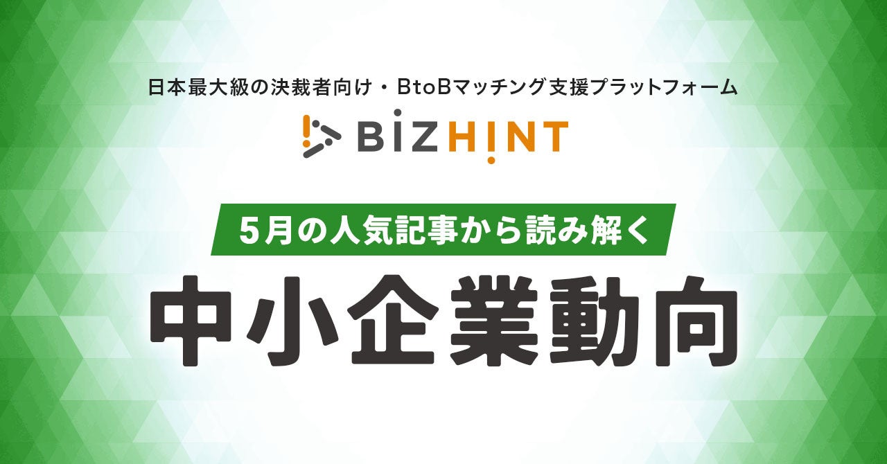 Visionalグループの株式会社ビズヒント(所在地:東京都渋谷区/代表取締役社長:関 哲)が運営する、クラウド活用と生産性向上の専門サイト「BizHint(ビズヒント)https://bizhint.jp/」は、5月の人気記事ランキング(※1)を基に、中小企業の決裁者が注目しているトレンドやポイントを、中小企業コンサルティングの専門家である井領 明広氏(つづく株式会社)の分析を踏まえた動向レポートとして発表しました。