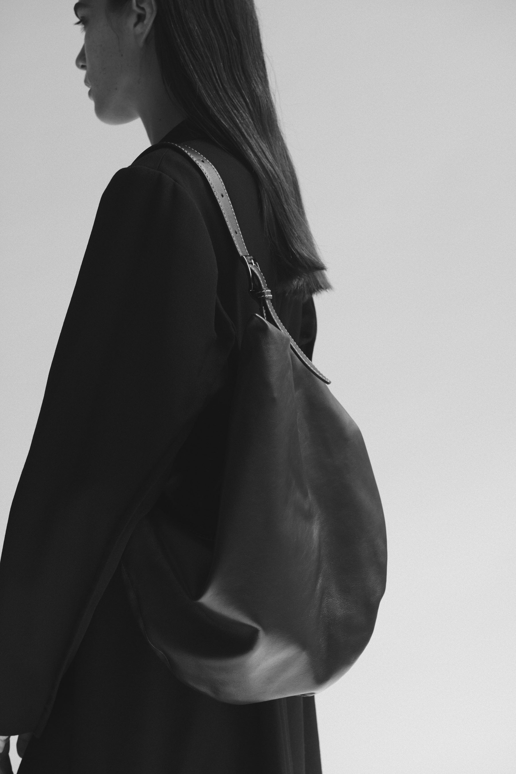 ストラップや開口部のファスナーの取付けにイエローの糸を使い、縫い目をステッチワークとして表現した「ROUND」。中に物を入れ、肩にかけるあるいは手に持った時にドレープが生まれるフォルム。優美なレザードレープがつくる有機的な陰影と、幾何学的な丸いラインがユニークなバランスで、小気味よく配されるステッチワークが手工芸的なニュアンス──discord Yohji Yamamotoのクラフツマンシップの要素をささやかに伝えます。ROUNDのピエスユニックは、全3型をご紹介します。