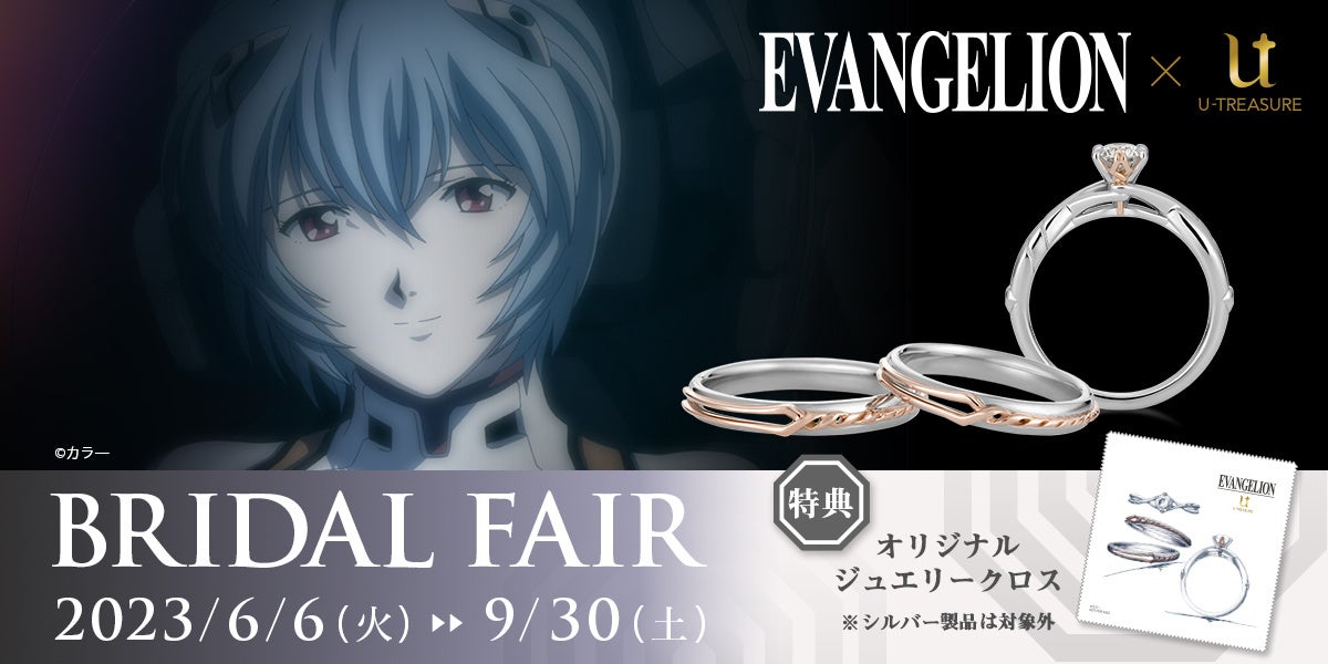 この度の企画は、世界的にも有名なアニメーション作品「エヴァンゲリオン」とコラボレーションしたブライダルフェアです。人気のロンギヌスの槍をモチーフにしたセットリング(指輪)をはじめ、カシウスの槍・ガイウスの槍をモチーフにした結婚指輪など全10種類を取り揃えています。熟練の職人が細部にまでこだわり「エヴァンゲリオン」の世界観を表現したブライダルリングをはじめ、ジュエリーを多数展開中です。ブライダルリングをお探しのお客様はぜひこの機会にご覧ください。