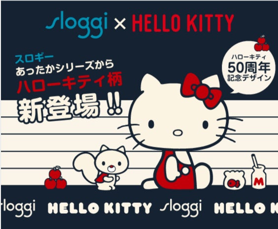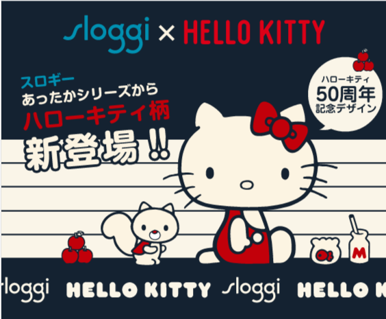 サンリオの人気キャラクターであるハローキティ誕生50周年をスロギーがお祝いして、スペシャルなコラボレーションが実現!冬の定番であるニットインナーシリーズが、今シーズンは、ハローキティ柄で登場します。