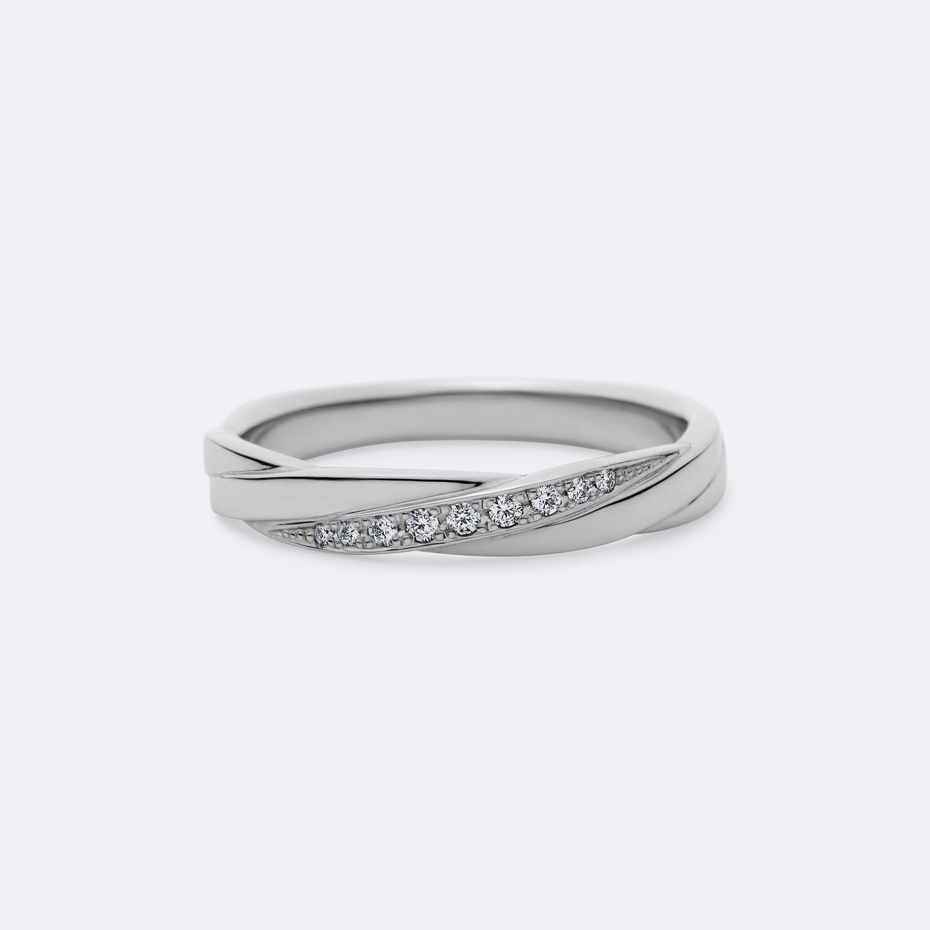 柔らかく編み込まれたロープをイメージしたフォルムが、「ふたりの絆」や「永遠の繋がり」を想起させるマリッジリング。