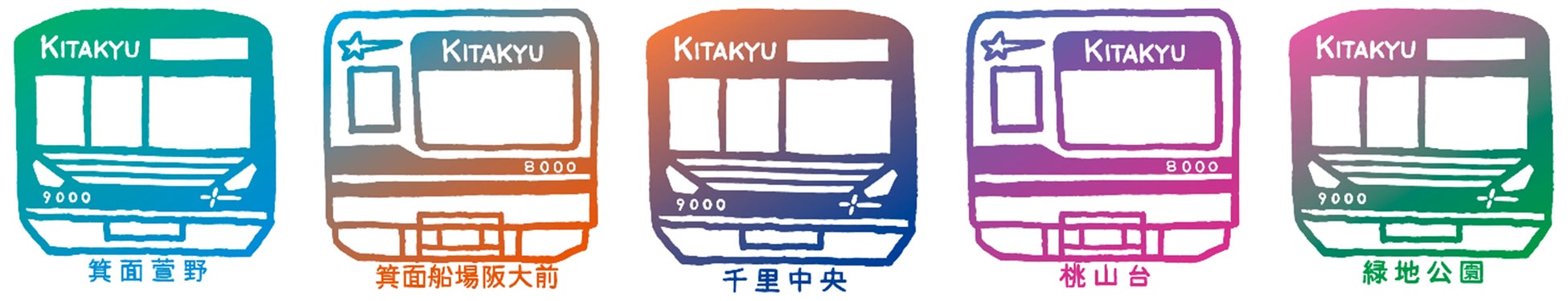 箕面萱野駅、箕面船場阪大前駅、千里中央駅、桃山台駅、緑地公園駅