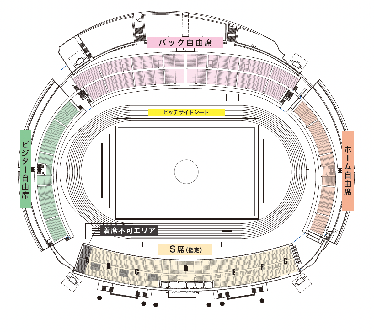 スタジアムの改修工事のため、ホーム自由席とビジター自由席の位置が通常のリーグ戦と異なっております。