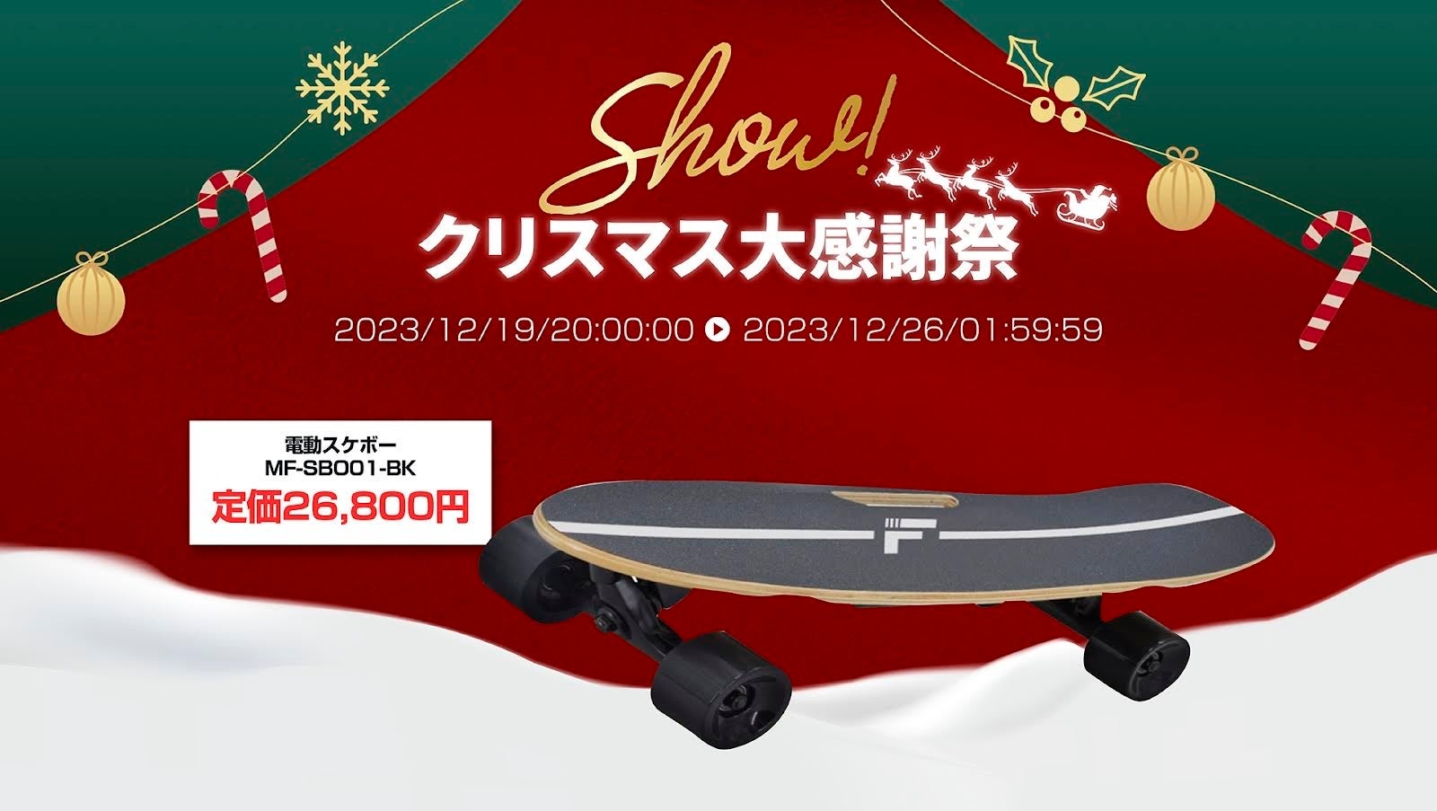 楽天「Show !t」購入後に安心して練習できるアイテムがプレゼントでお得!MEISTER.F電動スケートボードを販売。さらに12月19日20時開始の楽天大感謝祭でポイント10倍プレゼント