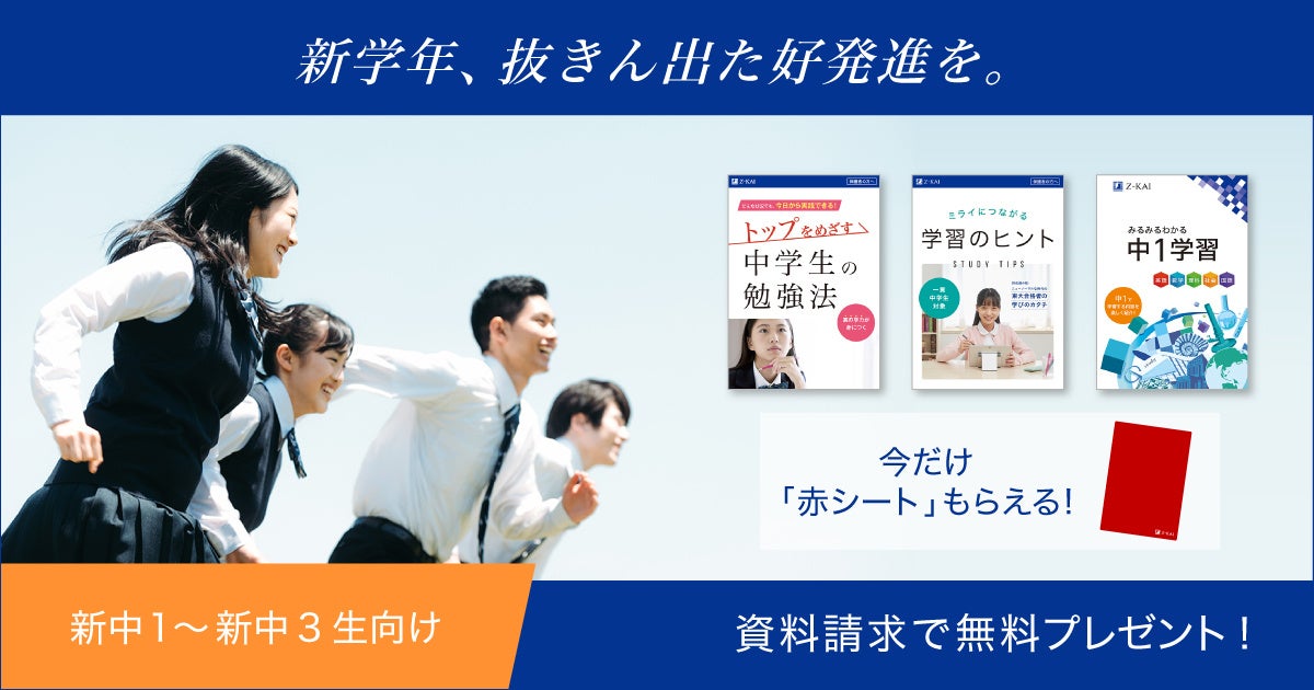 株式会社増進会ホールディングス(Z会グループ)のグループ会社である株式会社Z会は、「Z会の通信教育」中学生向けコースにおいて、新中1生〜新中3生を対象にした「春のロケットスタートキャンペーン」を実施しています。中学入学・進級を控えたお子さまが、新学年を好発進するのに役立つ冊子に加えて、効率よく学習を進められるアイテムとして「赤シート」を無料プレゼントします。Z会中学生向けコースの資料と一緒にお届けしますので、ぜひこの機会にZ会中学生向けコースの資料を請求してみませんか?