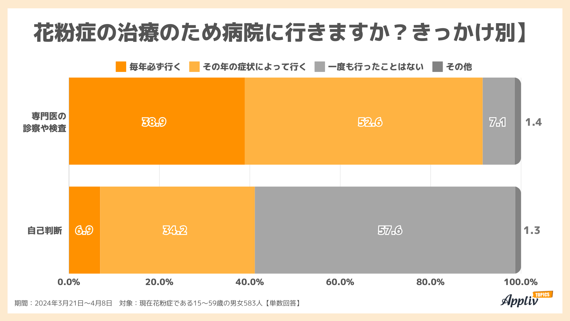 自己判断した人の場合、治療を受ける代わりに、何かしらの花粉症対策を行っていると考えられます。