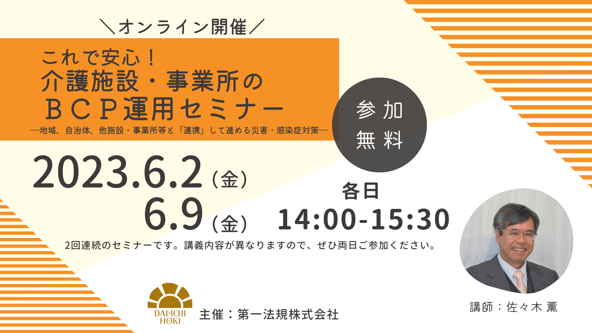 【介護事業者向け無料オンラインセミナー】6/2、6/9「これで安心!介護施設・事業所のBCP運用セミナー」開催!