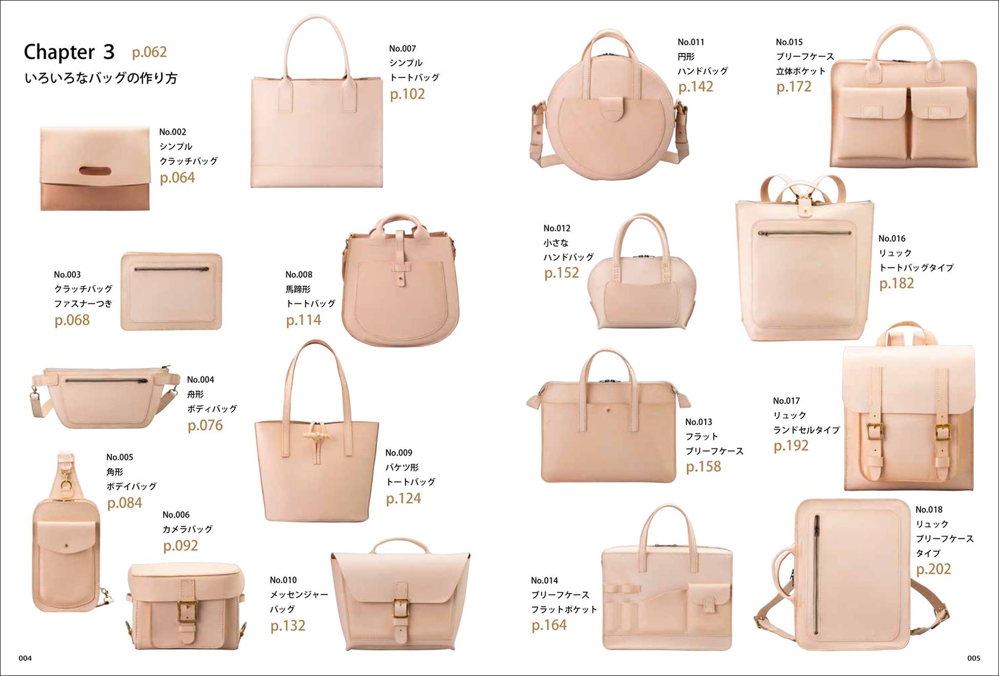 ワークショップでも絶大な人気を誇るトートバッグや、人気のランドセルなど本格的で実用的なバッグ18点を紹介。シンプルなサコッシュやクラッチバッグから少し複雑なリュックや、カメラバッグまで無理なくステップアップすることができます。