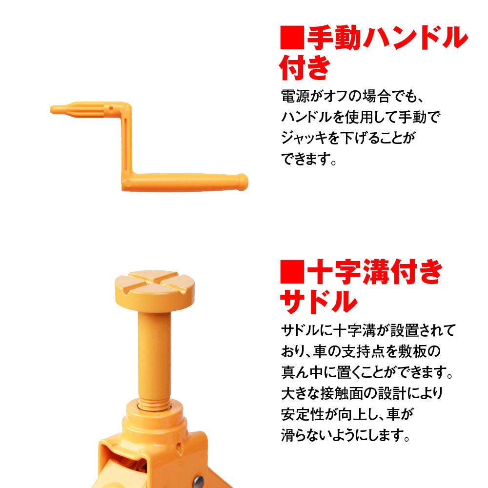 シンプルな設計なので専門知識が無くても簡単に使える電動ジャッキです。