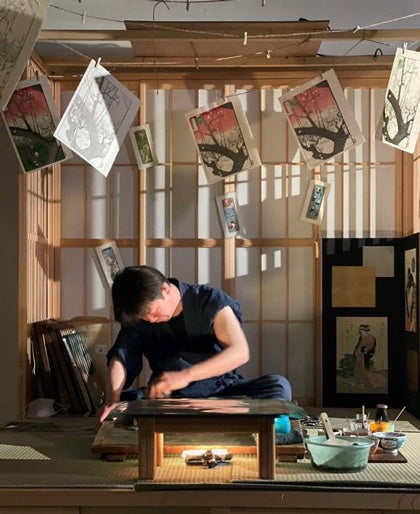 会社員を経て鉄井木版画工房に入り摺師の道へ。