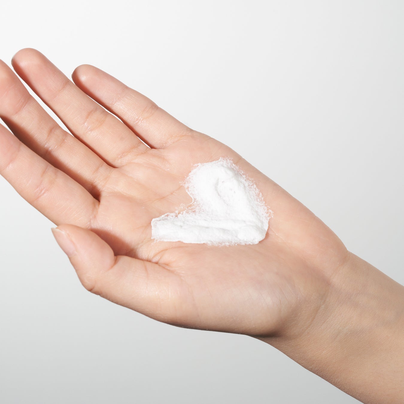 ①缶をよく振ってからご使用ください。頭部を上にして手のひらから約5cm離し、肌が透けて見えないくらいの厚みで、5cmくらいの円を描くようにスプレーします。