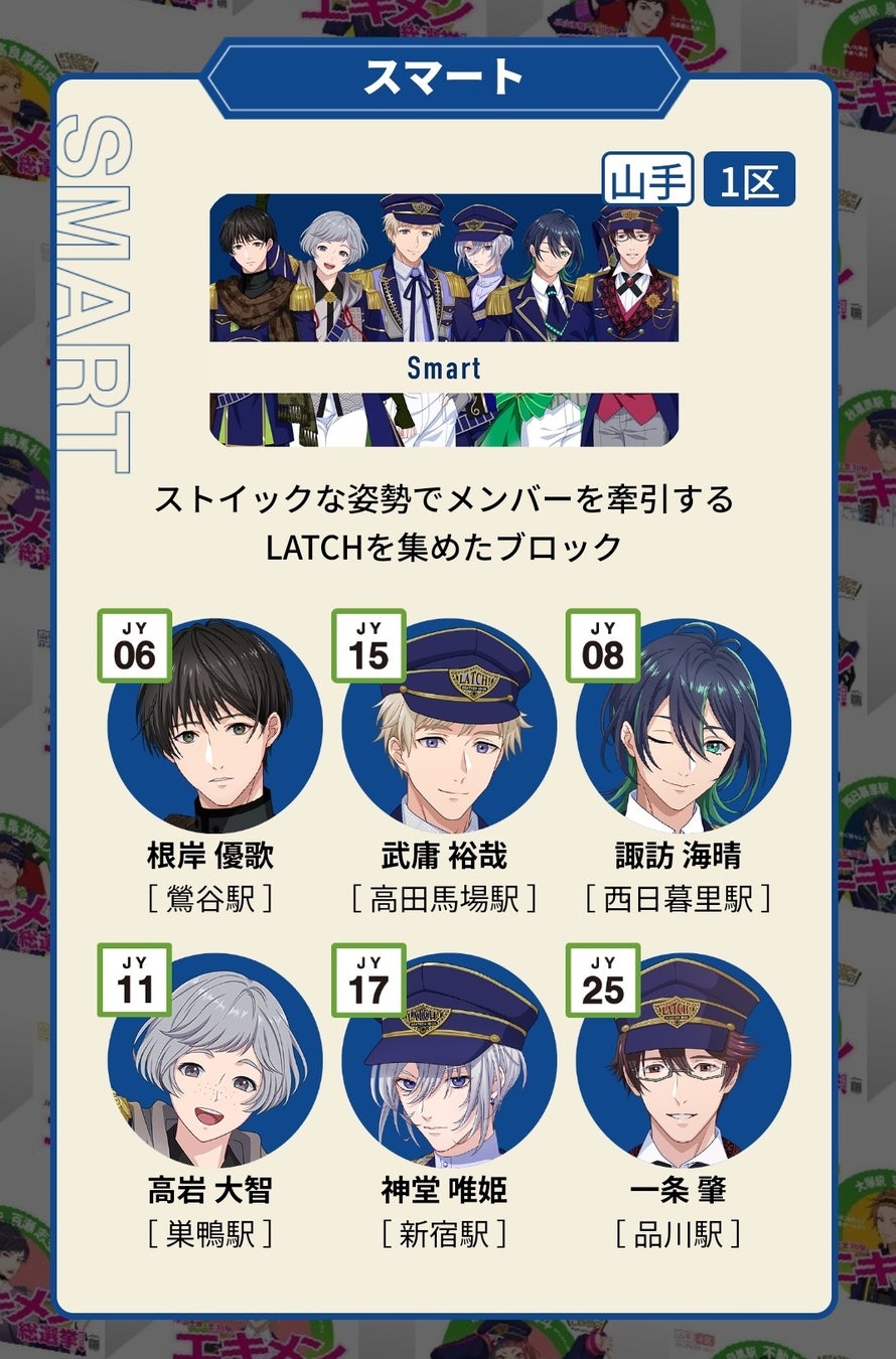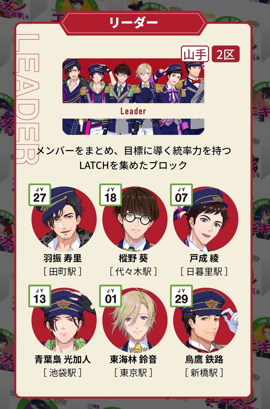 8月18日(金)にスタートした山手線最強メンバーを決める「エキメン総選挙」にはLATCH総勢30名が属性ごとに5つのブロックに分かれて参戦。パッセンジャー(=ファンの呼称)のみなさまからの投票を受け付けています。