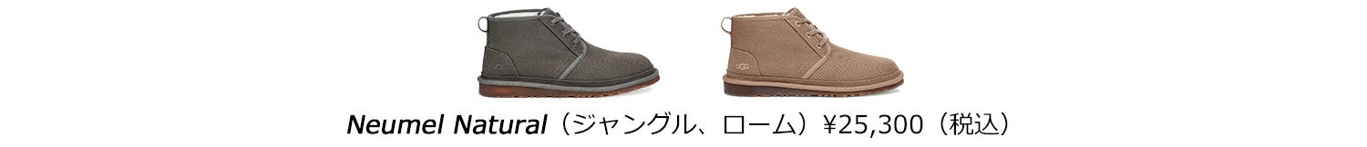 オールジェンダー対応のNeumel Natural(ニューメル ナチュラル)からは新色が登場。UGGの環境フットプリントを考慮してデザインされ、コットン45%、ヘンプ(麻)55%の耐久性に優れた混紡素材で織られているアッパーは、農業廃棄物を利用した染料を使用。ライニングにはTENCEL™リヨセルを100%使用しています。ヘンプは、空気中の二酸化炭素を吸収する再生可能資源で、コレクションの他のスタイルにも使用されているTENCEL™ リヨセルは、植物の力から生まれるUGGならではの心地よさをもたらしています。手作業で作られるUGGのHevea(ヘベア)ラバーソールは、パラゴムノキから採取した天然ゴムを使用したソールで、天然林を伐採する必要がないため、最大限のクッション性をもたらしながら、環境への影響を最小限に抑えることができます。人工的な素材は排除した仕様になっています。