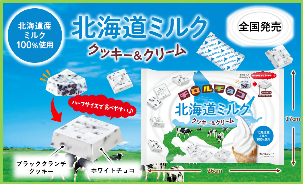 北海道産ミルク100%使用!新商品「チロルチョコ〈北海道ミルク クッキー&クリーム〉」を3/14に発売