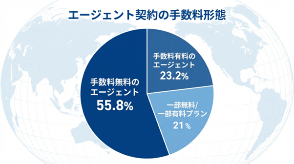 手数料体系について尋ねたところ、「完全無料」が55.8%、「完全有料」が23.2%、「一部有料(無料と有料のサポートがあった)」が21.0%という結果でした。