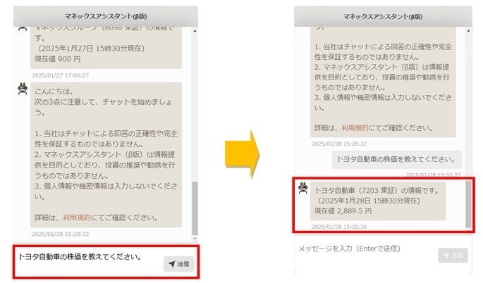 マネックス証券株式会社(本社:東京都港区、取締役社長執行役員:清明祐子、以下「マネックス証券」)は2025年1月30日(木)18:00(予定)より、口座保有者向けに株価情報やマネックス証券に関するご質問に回答する「マネックスアシスタント(β版)」の提供を開始しますので、お知らせいたします。