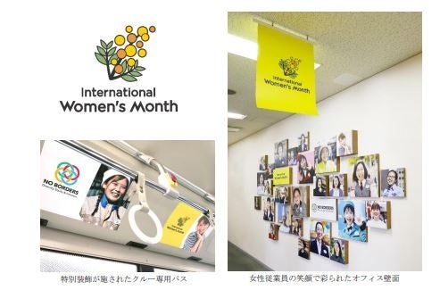 ユニバーサル・スタジオ・ジャパンで働く女性従業員の貢献を称え、オフィス内の壁面へのデコレーションや、クルー専用バスの車内が、3月1か月間限定で「女性史月間」の特別仕様となりました。この期間、DEIについて話す機会、触れる機会を増やし、社内の意識も高めてまいります。