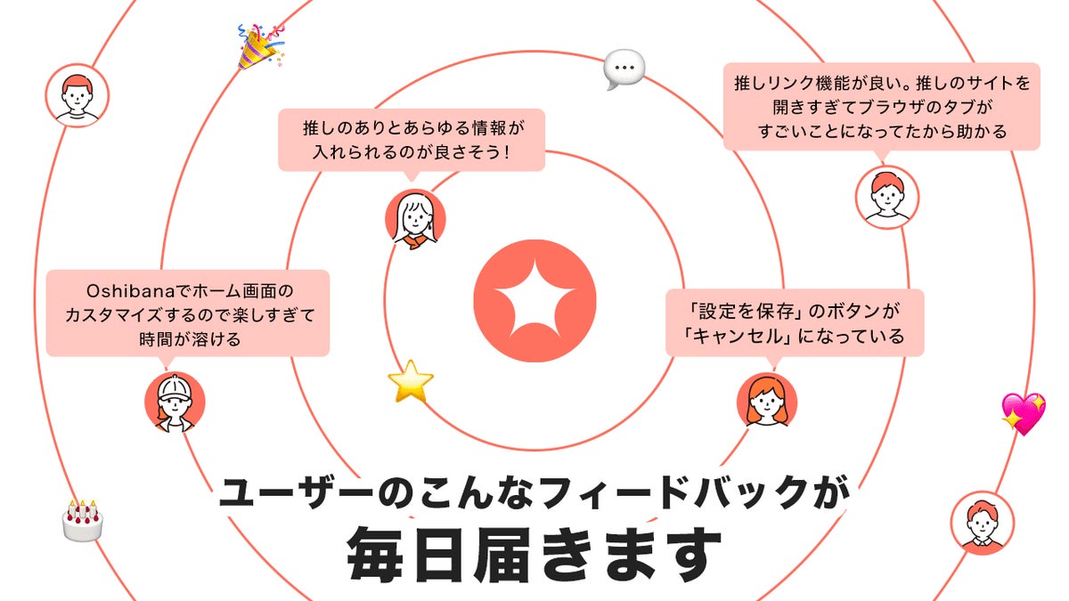 推し活アプリ「オシバナ」は、推し活を通して「今日も生きてて幸せ」と思える時間を増やすアプリです。推す側の立場から推し活について考え、ユーザーと一緒にサービス開発を行っています。