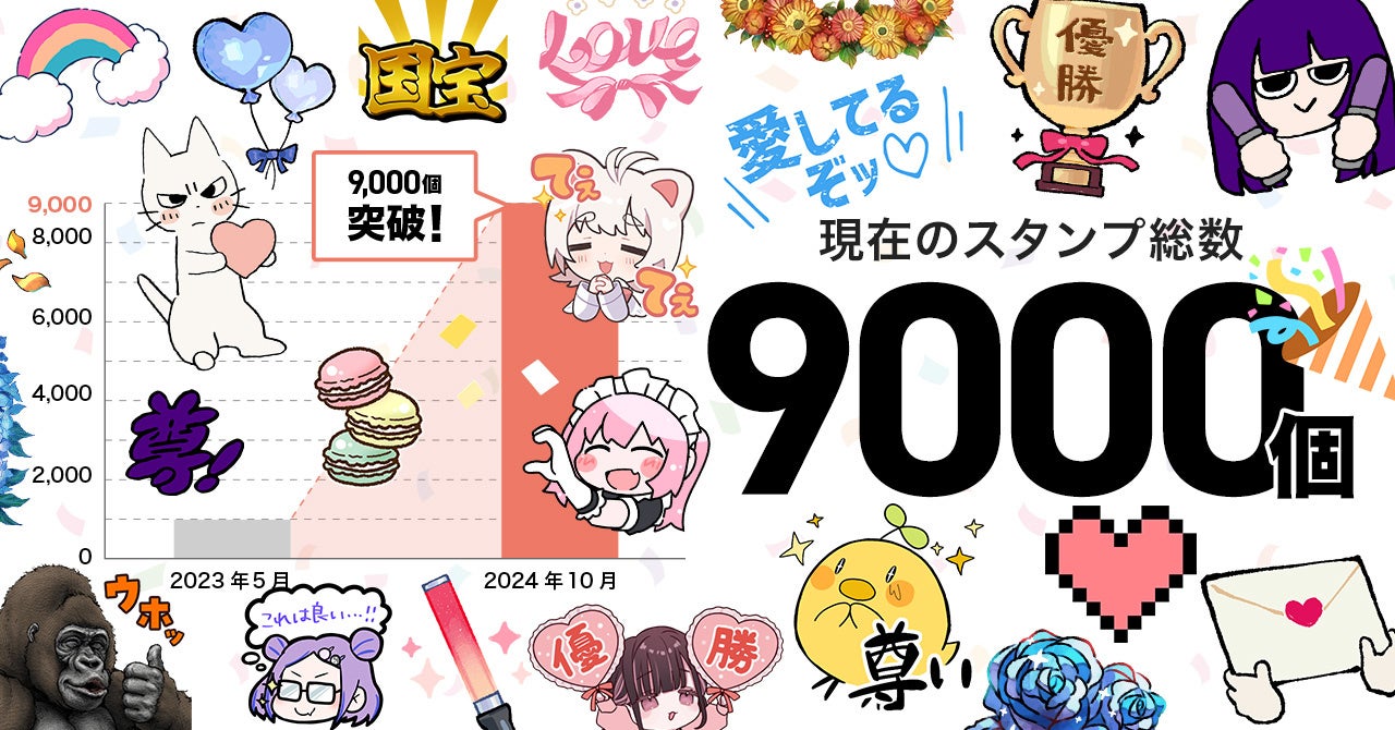 推しマークや気持ちを表現しやすい絵文字、クリエイターの公式スタンプなど、現在では約9,000種類のスタンプと100名以上のクリエイターが参加しています(2024年12月時点)。